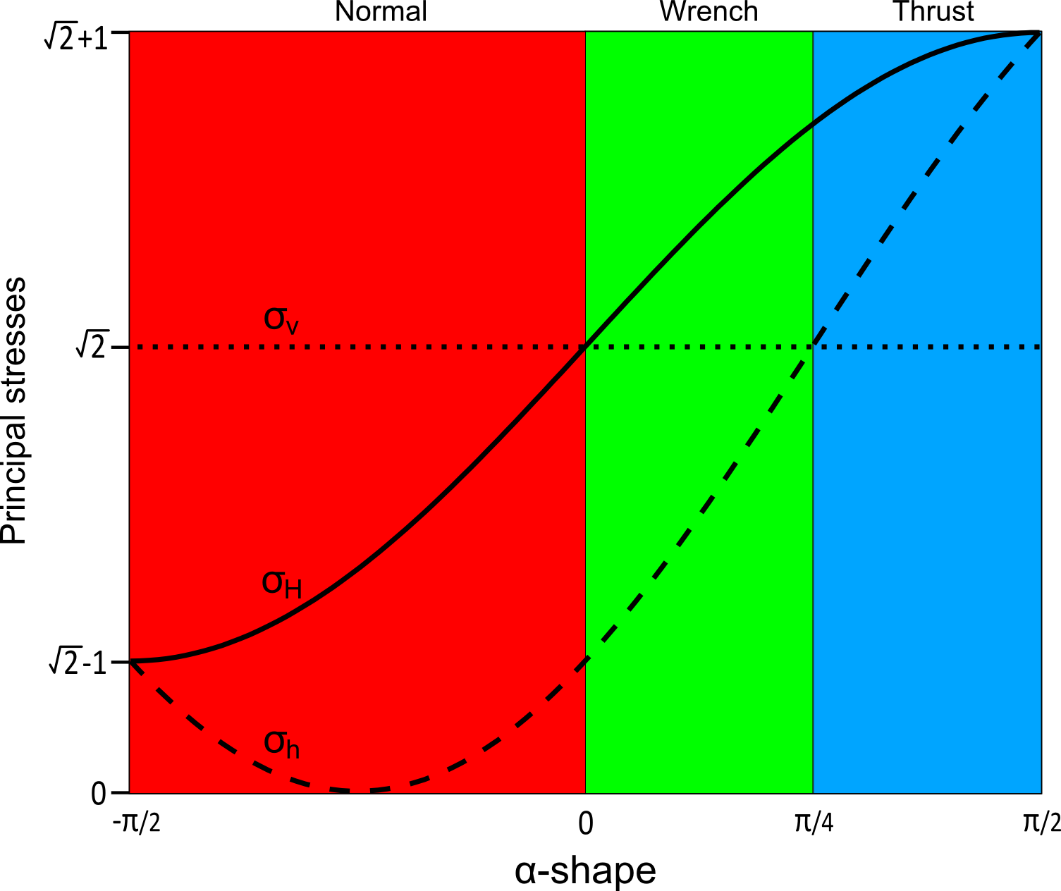 Relations between alpha-shape and the three principale stresses